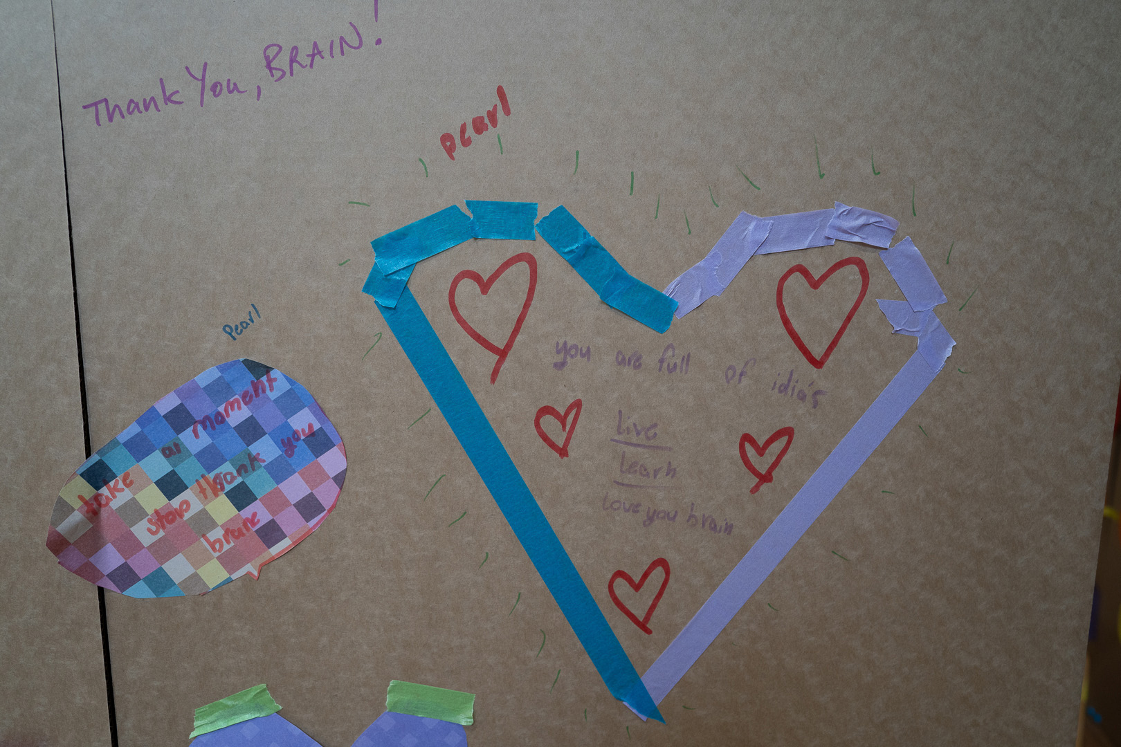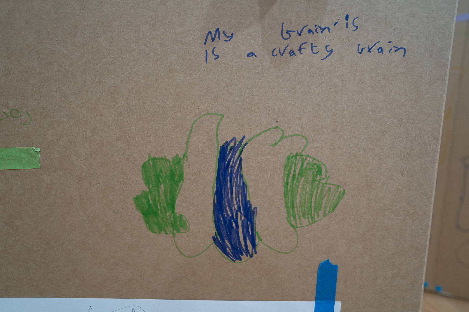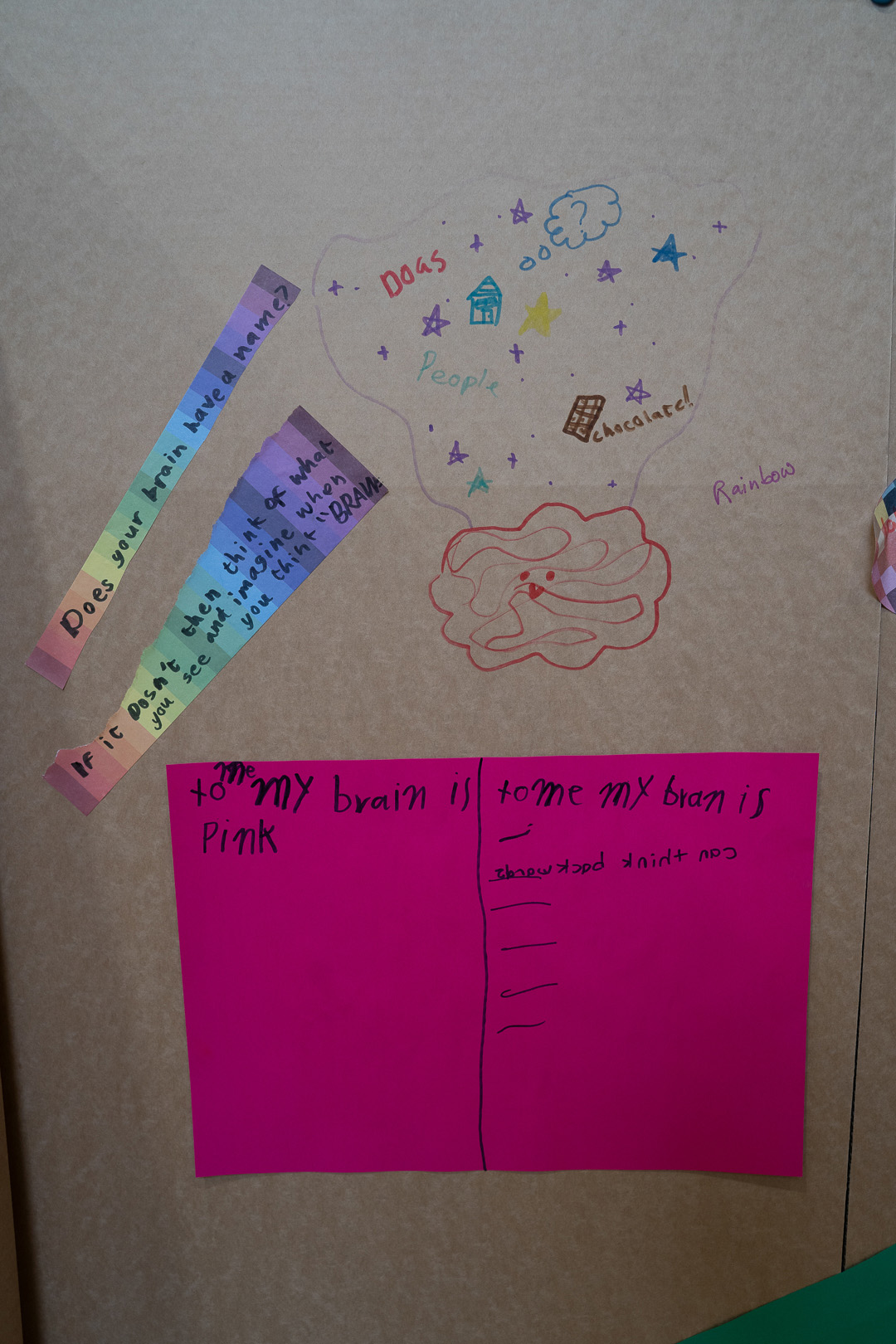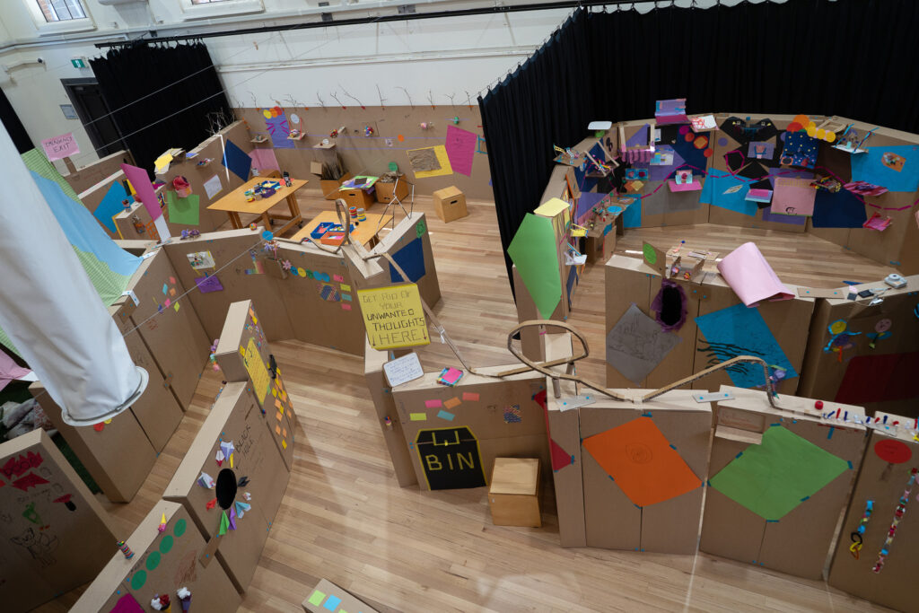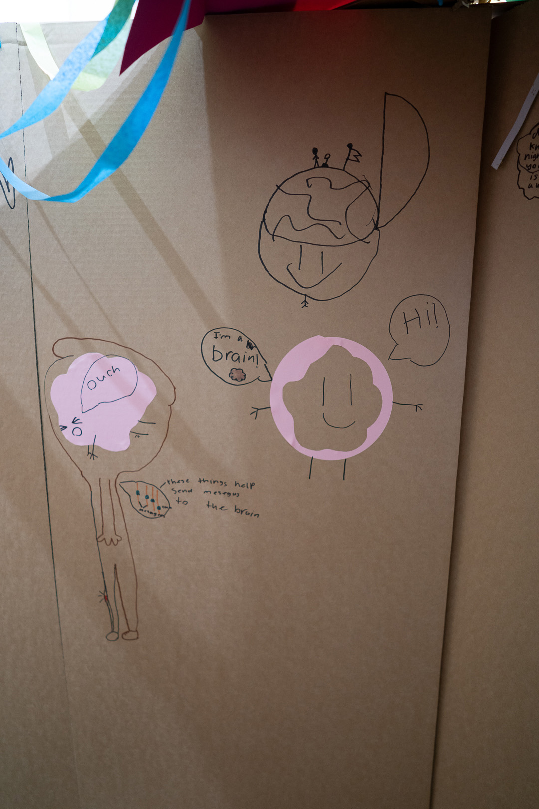 A-maze-ing Brain! is a giant brain-shaped maze co-created with children living with dementia and children with a range of abilities. This interactive art installation invites children to share the way they imagine their brain through drawing and construction. It connects them with each other and the public in fun, creative ways.