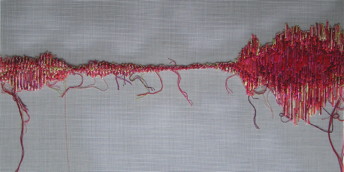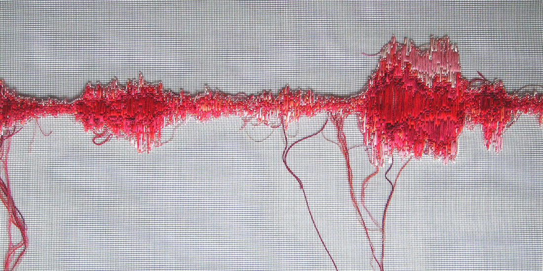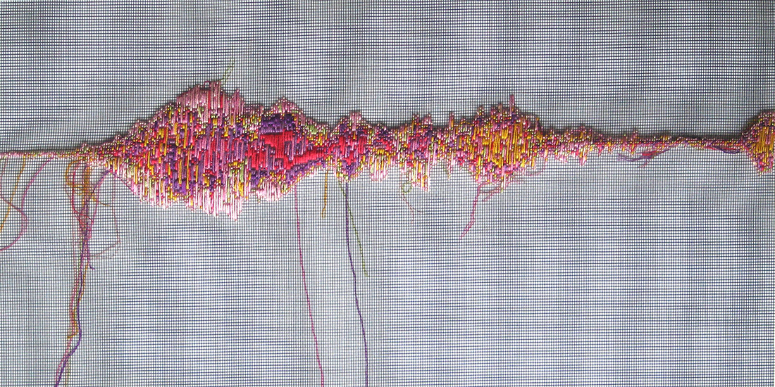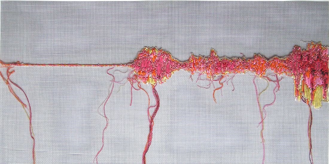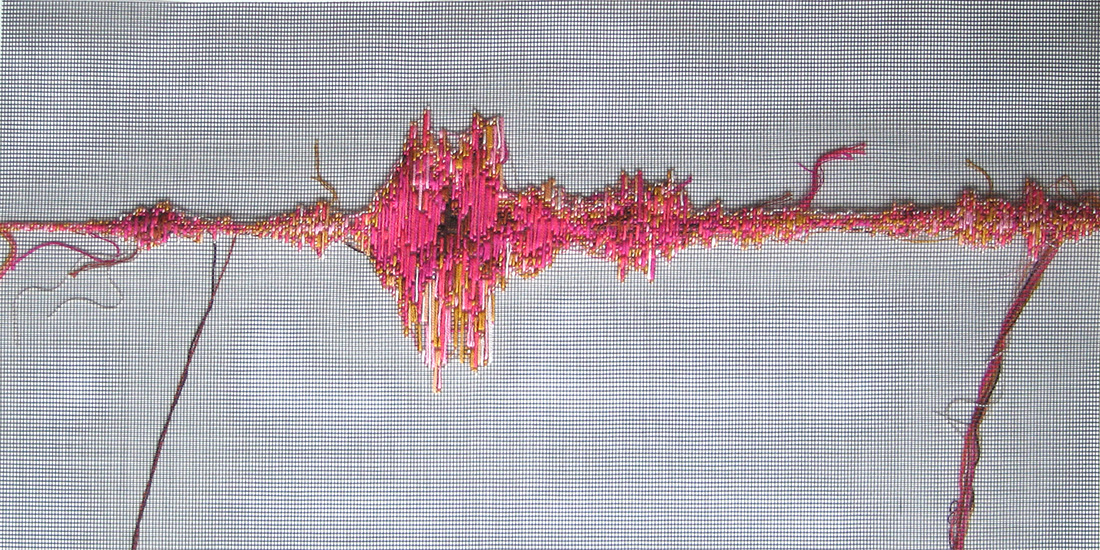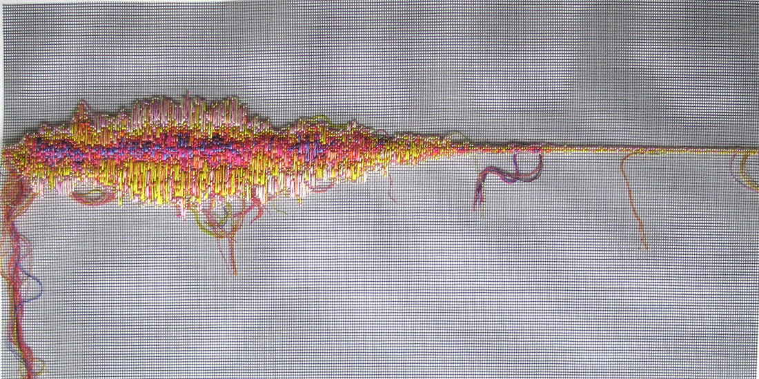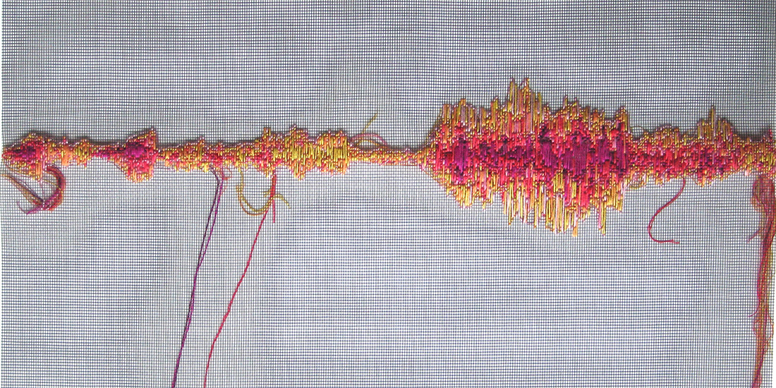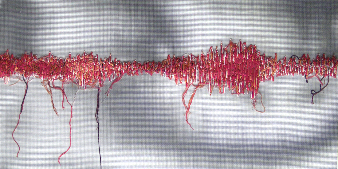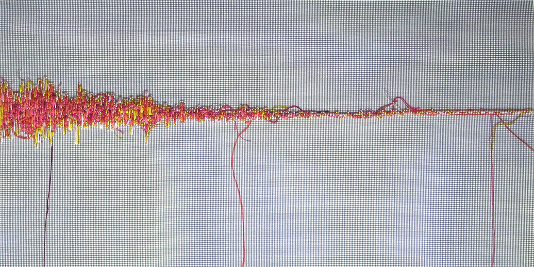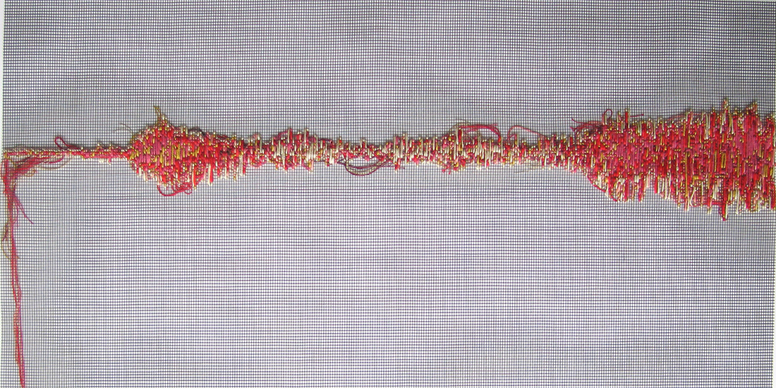 So I sit at my stitching frame, head bent far down, chin to chest, stitching, stitching, stitching, and considering. What do people do in times of war when they barely appear as such – like these days here? What to do when, despite the daily media coverage whose news is as regularly repetitive as the grid on the fly screen, I feel so removed. And unwilling. So I sit and stitch and this action becomes an action of inaction, like all my other daily actions. And they become actions of waiting where every second takes forever and every year is absurd.
