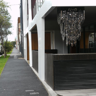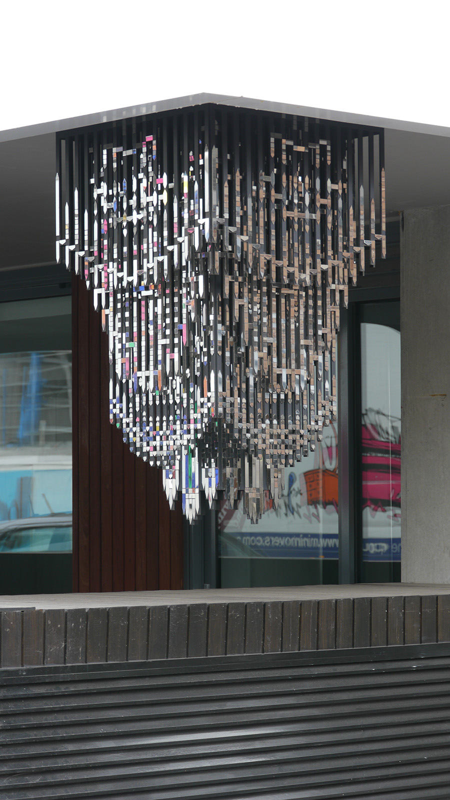 Here a chandelier (2012) anodised aluminium, mirror finish stainless steel, 1170 x 660 mm A commissioned public art work for the Armada Apartments in Nott St, Port Melbourne. String theories (2012) Flags for the Fourth Dimension (2011)
