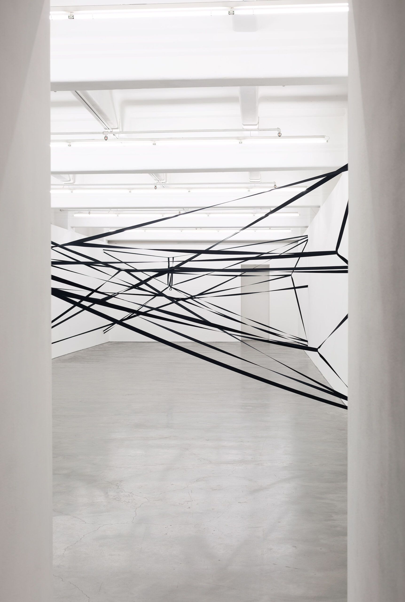 For this exhibition I worked with a team of people to create four giant string figures out of waistband elastic. The figures stretched diagonally across the Anna Schwartz Gallery and threaded through the wall.