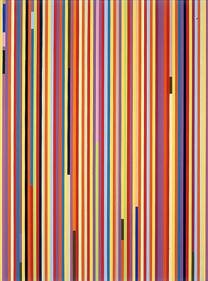 Tax Payer’s Money is a graphical illustration of the Australian Federal Budget’s Final Budget Outcome for 1999-2000, based on values for “expenses by function”. At a glance the width of each painting illustrates comparative expenditures across the fourteen sections. Within each painting, individual colours reflect the subsection divisions.